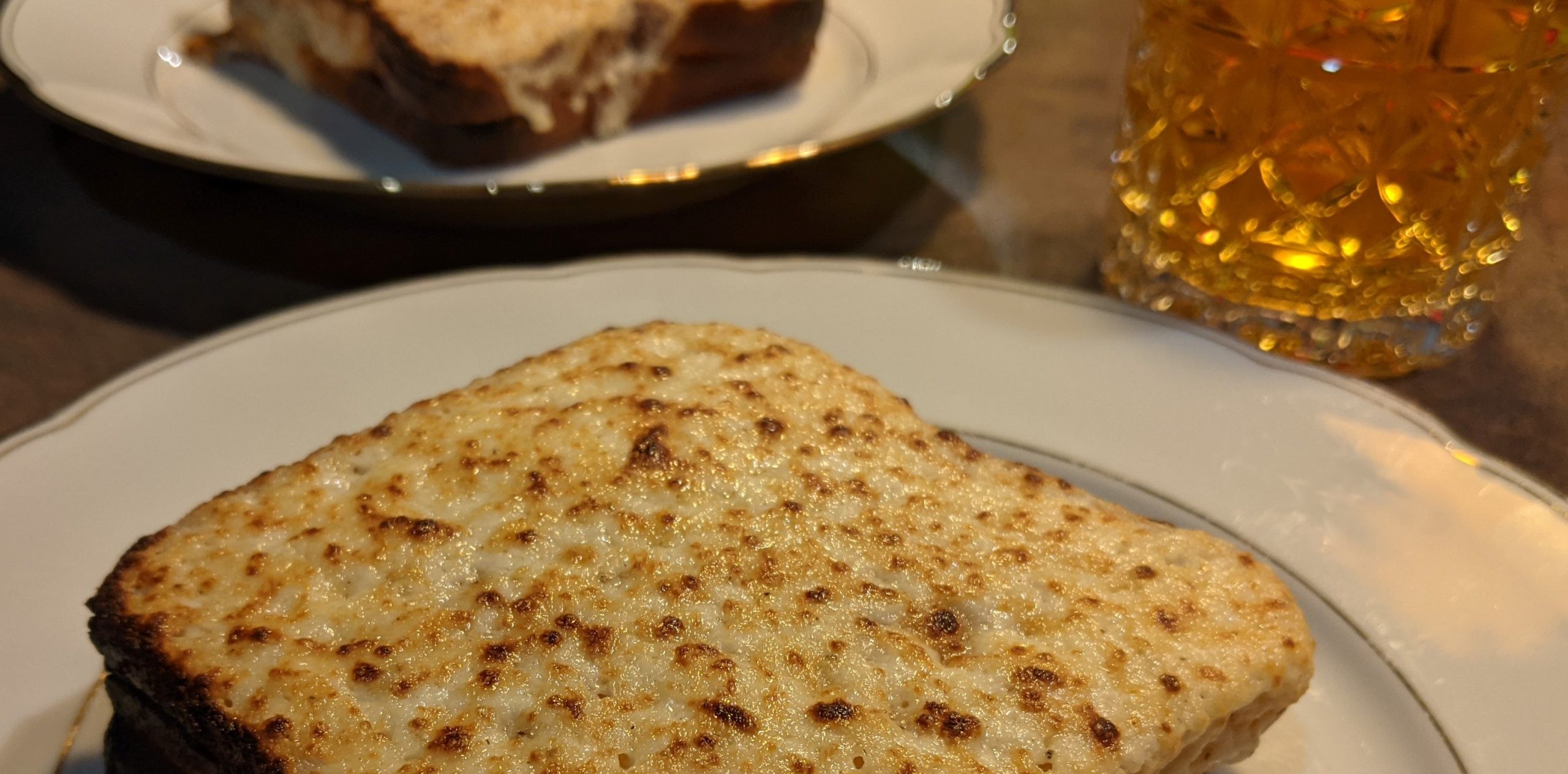 Die gebratenen Brote werden auf einem Rost abgelegt und mit einer vereinfachten Sauce Mornay überzogen. Hierzu wird aus